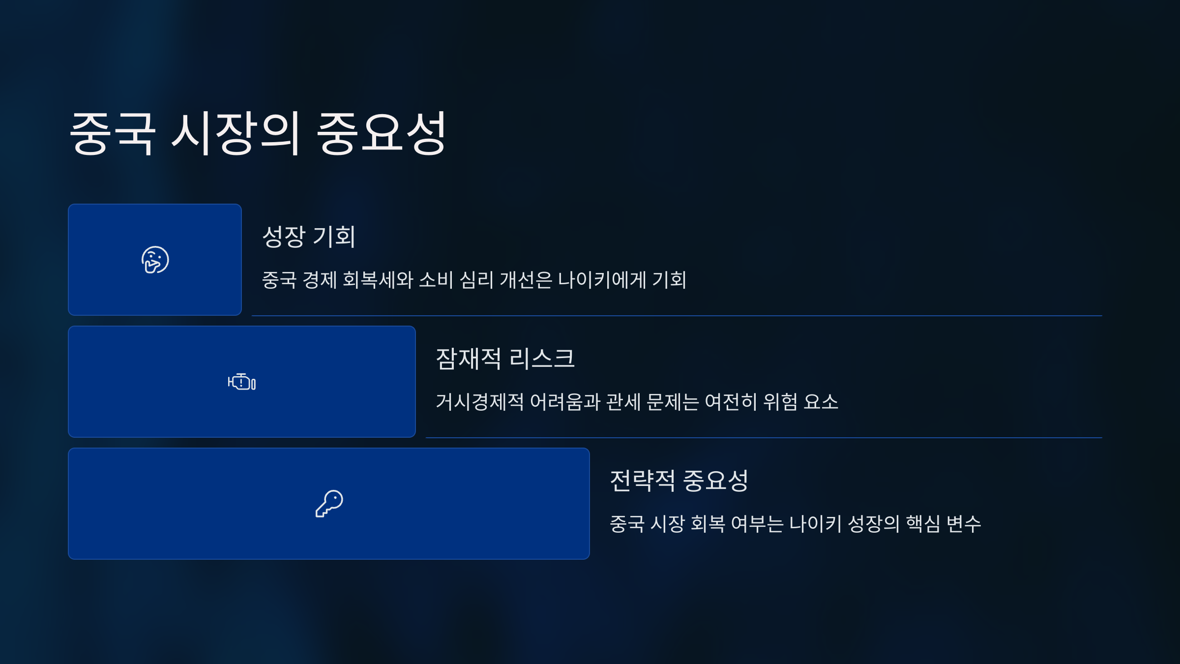 중국 시장의 회복 여부는 나이키의 성장에 중요한 변수입니다.