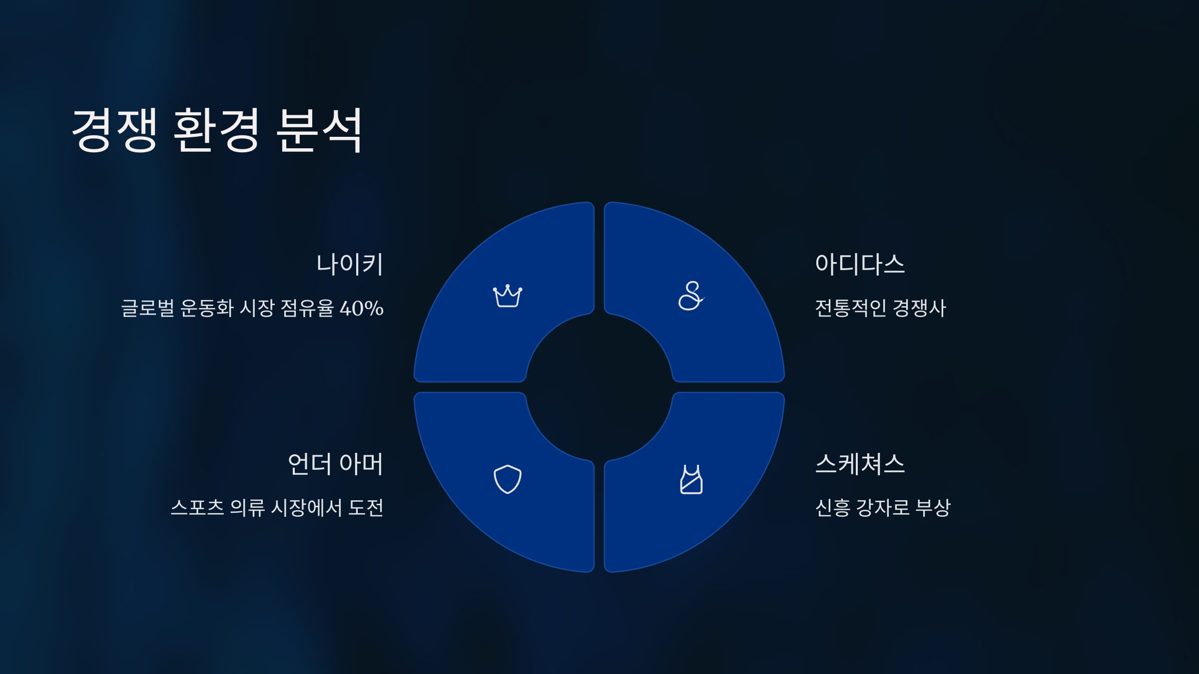 스케쳐스(SKX), 언더 아머(UAA) 등 신흥 강자들의 등장으로 경쟁은 더욱 치열해지고 있습니다.