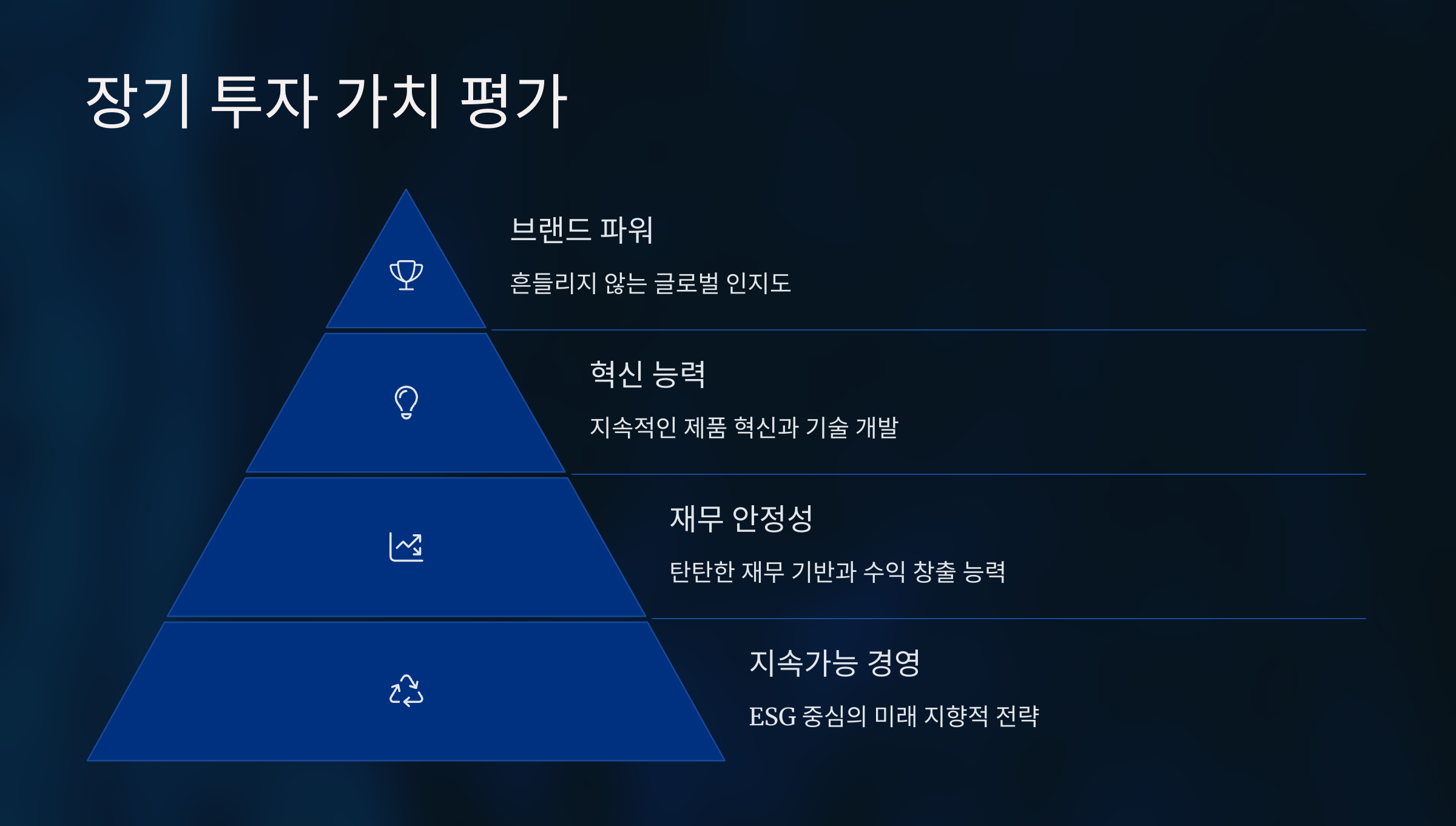 탄탄한 재무 기반, 혁신적인 제품 개발 능력, 흔들리지 않는 브랜드 파워,
