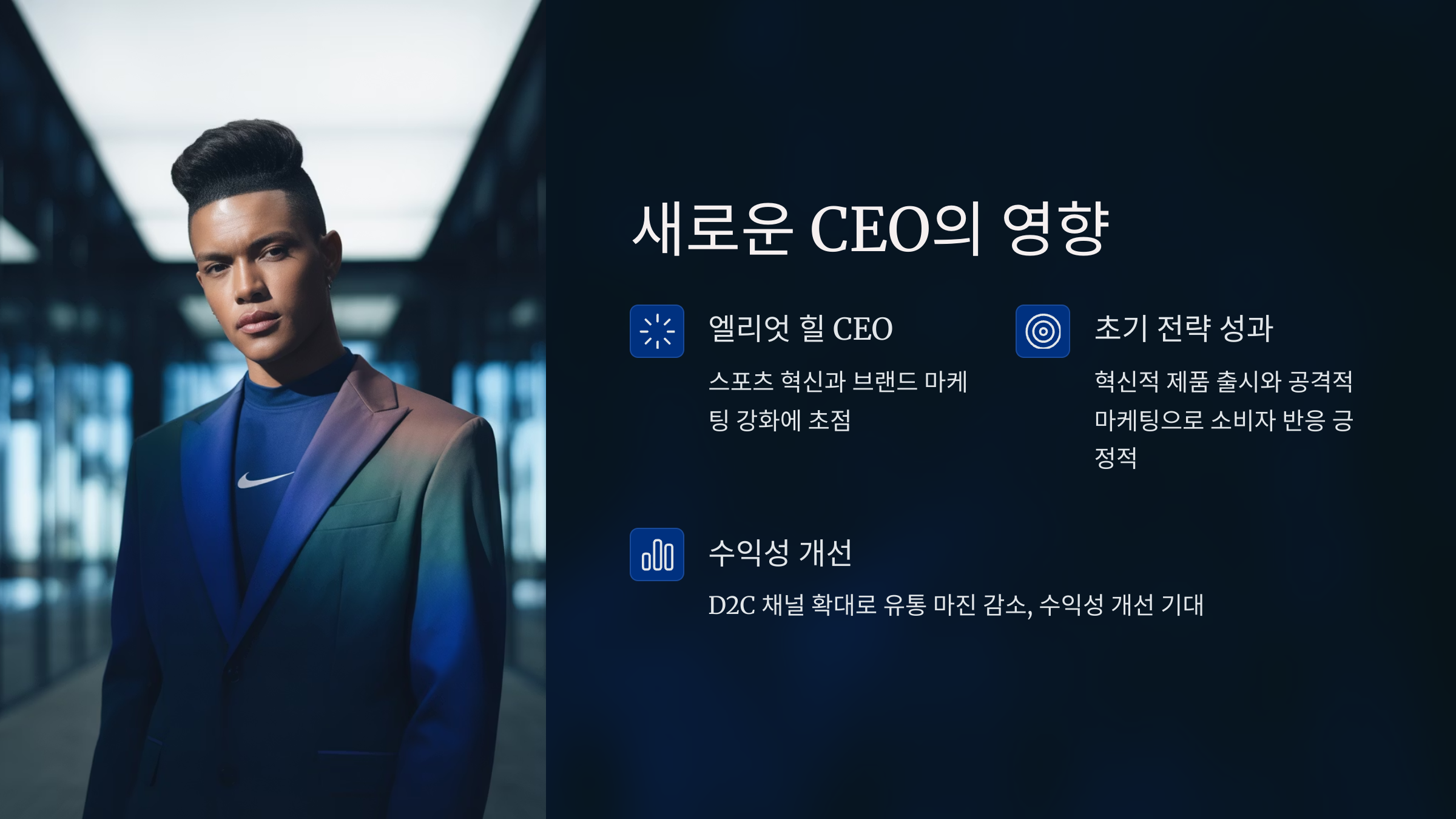 나이키의 새로운 수장, 엘리엇 힐 CEO는 스포츠 혁신과 브랜드 마케팅 강화라는 카드를 꺼내 들었습니다.