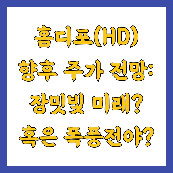 2024년, 홈디포(HD) 투자는 매력적인 기회일까요? 아니면 위험한 함정일까요?! 변동성이 큰 시장 속에서 홈디포의 주가는 춤을 추듯 오르락내리락 하고 있습니다. 지금, 데이터와 전문가 분석을 바탕으로 홈디포의 실시간 시세, 미래 전망, 그리고 현명한 투자 전략까지 낱낱이 파헤쳐 보겠습니다. "투자의 신"이 되고 싶다면, 지금 바로 집중하세요! (키워드: 홈디포, 주가 전망, 실시간 시세, 투자 전략, HD)